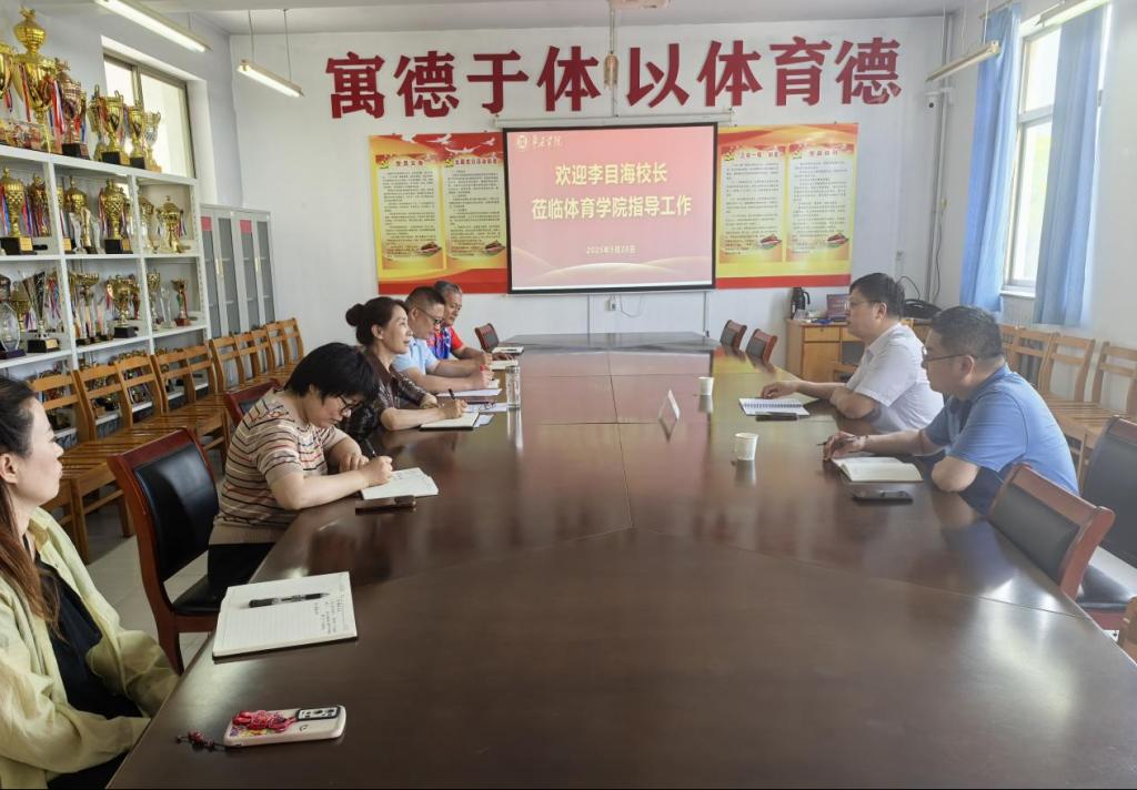 李目海在听取汇报后,对太阳成集团122ccvip在党建引领、教学改革、科研创新等方面取得的成果给予充分肯定,并结合公司发展目标对公司工作提出指导性意见。他强调,太阳成集团122ccvip要立足新发展阶段,聚焦四个方面重点发力:一是以人才培养为核心,狠抓教风学风建设,提升育人质量;二是以公司发展为导向,凝心聚力,营造干事创业的良好氛围;三是以硕士点申报为契机,强化科研团队建设,推动高水平成果产出;四是以特色学科队伍为依托,深化优势领域,打造体院品牌。他要求公司充分运用解放思想大讨论形成的共识,进一步创新思路、谋划举措,为公司高质量发展注入新动能。